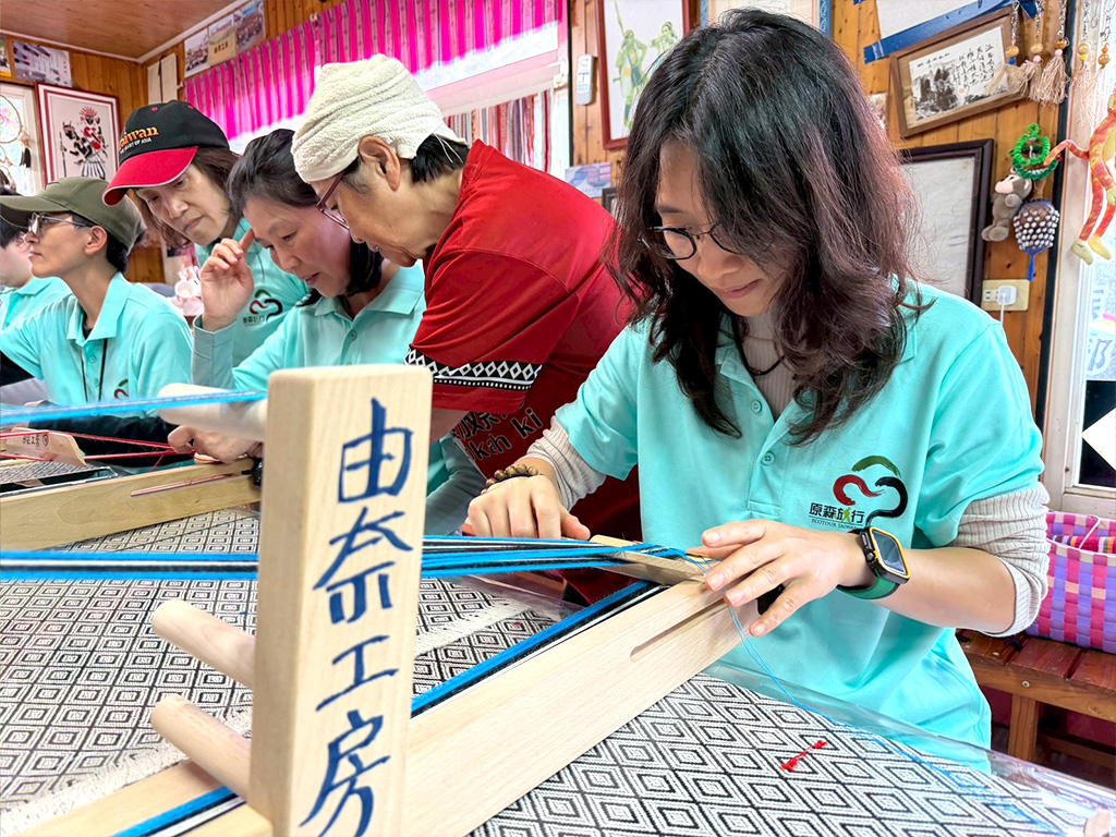 並且延伸「苧麻的天空」專案,前往由奈工房,透過實際操作織帶體驗,了解苧麻纖維如何化為傳統圖紋的意義與技法。透過親手參與,深化對泰雅織布文化、族群記憶與美學價值的理解。