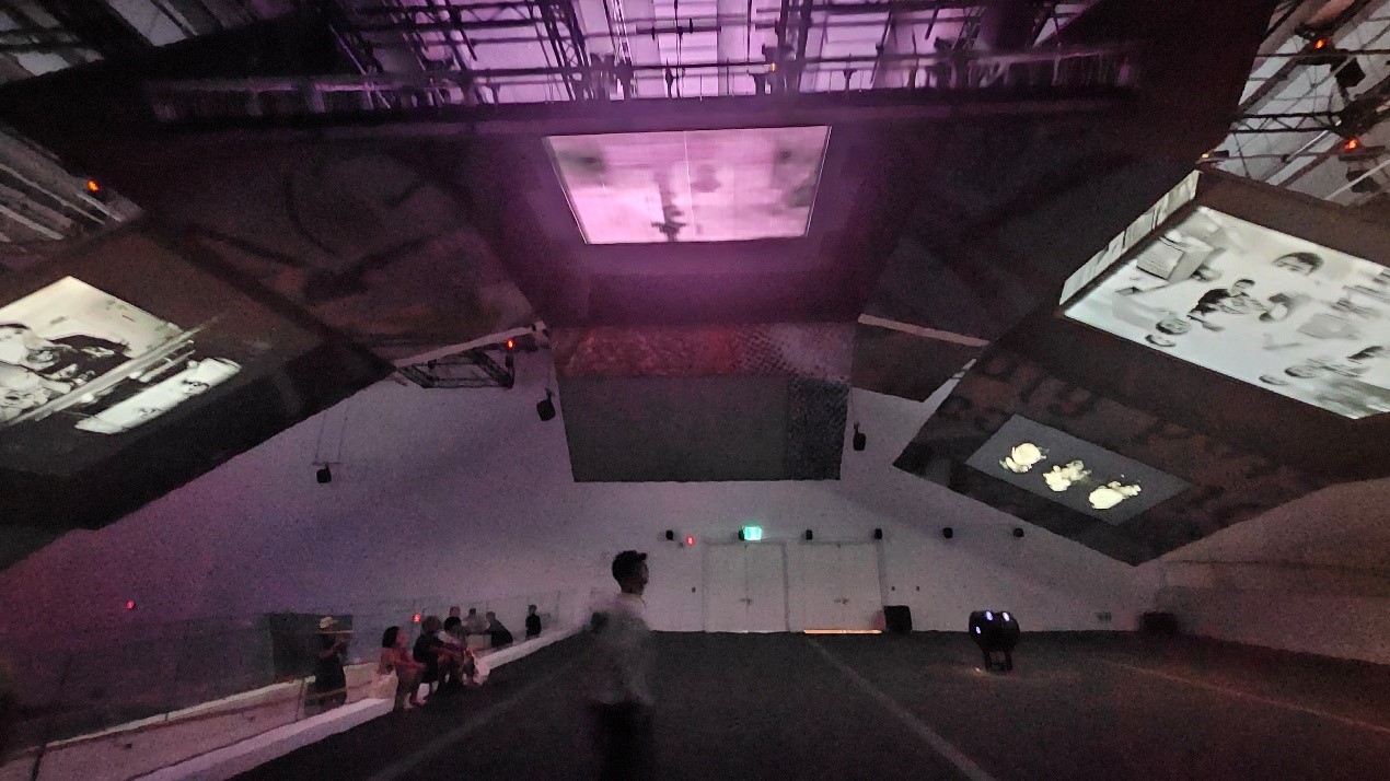 二樓開始進入主展區。新美館是一座現、當代美術館,訴求「立基在地,面向世界」,一方面鼓勵在地創作、本土題材,另一方面也邀請國際級藝術家來辦展。入口處的大廳計畫以落地LED螢幕呈現新北印象,館內則有六個展區,大約每三、四個月會換一次檔期。