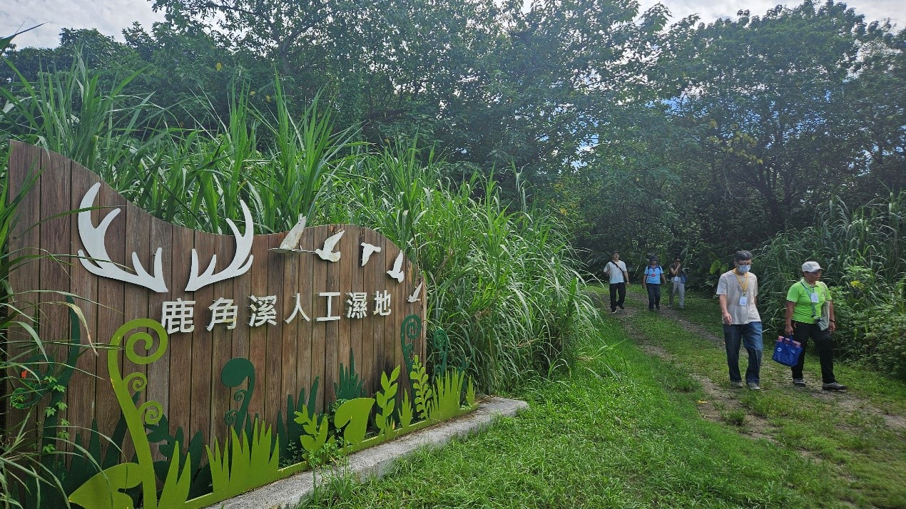 鹿角溪人工濕地採低碳流域的設計,不用馬達打水,利用天然地形的高低起伏引導水流。從現場的解說示意圖可以看到,整個濕地分成五大區:沉砂池、漫地流、近自然式溪流、草澤濕地、生態池,經過層層淨化的污水,最後才排入溪河中。