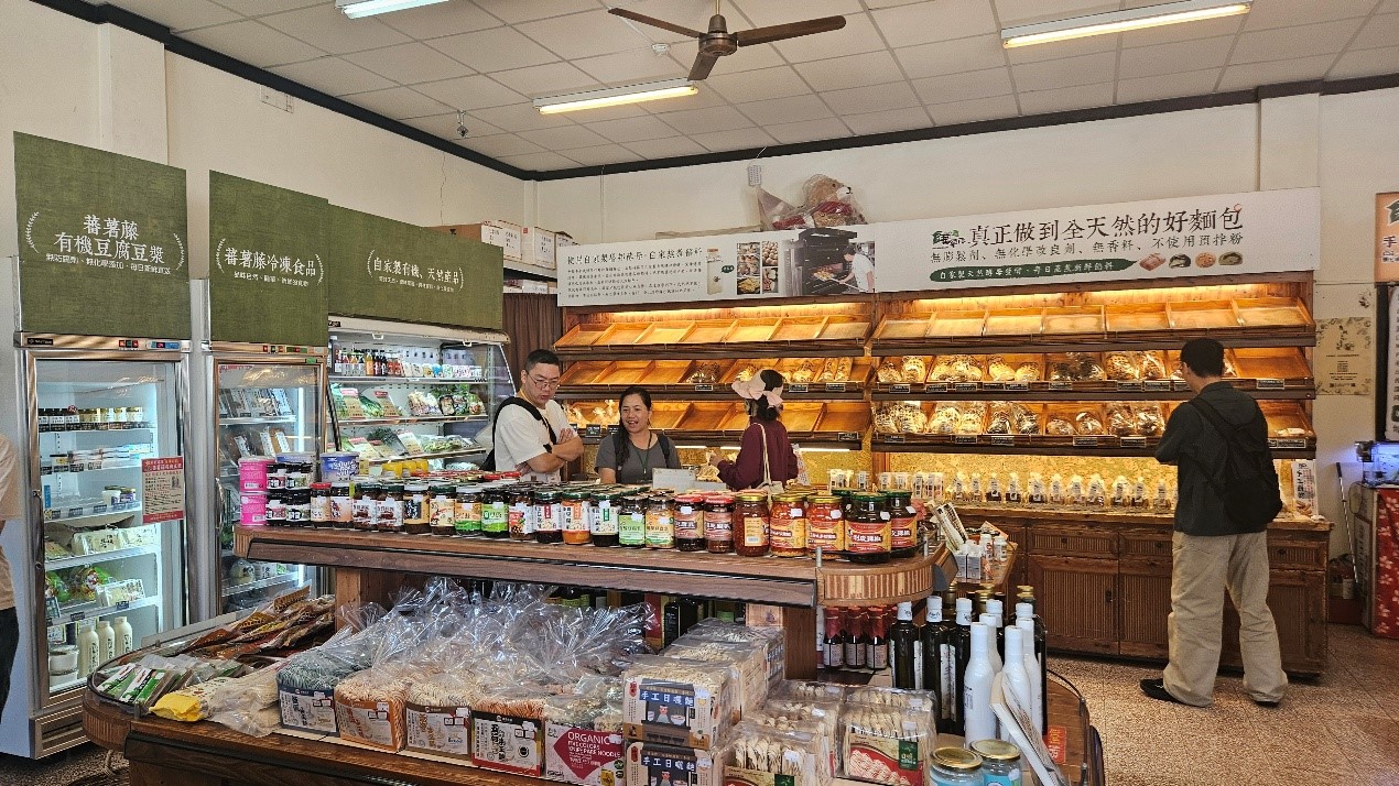 用完餐,可以逛逛門口的商品區,不管是生鮮蔬果、冷凍食品、有機麵包,甚至手工皂,都是自己生產、製作,喜歡的還可以順便帶回家。